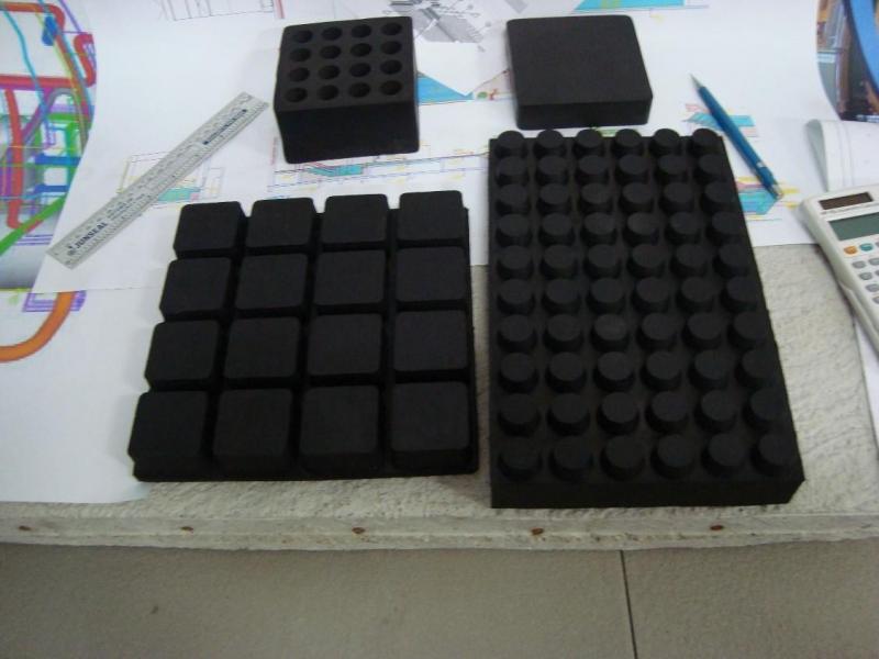 Os calços de borracha ou PAD de borracha são fabricados em elastômero de alta durabilidade, geralmente com frequência natural de 8 a 22 Hz. Esse tipo de produto oferece excelente performance para piso flutuante, apoio de estruturas e equipamentos, entre outros. Empregado também em locais onde não viabiliza a fixação com parafusos.